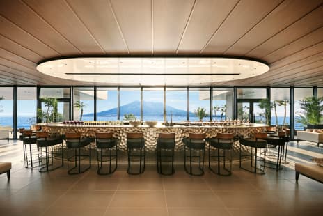 きらめく海と桜島を望むチャペルは、天井高7.6mの開放感あふれる空間です。純白のバージンロードは全長11mを誇り、鹿児島でも数少ない120名まで着席可能。広大な海の景色を遮ることなく、チャペル後方のオーケストラピットから美しい音楽に包まれながら挙式が執り行えます。また、チャペルのすぐ隣にはセレモニーテラスが広がり、桜島をバックに記念撮影やアフターセレモニーも叶います。
