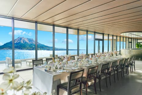 おふたりのご家族に専用でお使いいただけるドローイングルームからも、桜島の美しい景色が一望できます。桜島を間近に望む贅沢な空間で、ゆったりとお過ごしいただけるよう、広々としたお部屋をご用意。当日は、親御さま専属のファミリーコンシェルジュがきめ細かくサポートさせていただきます。
