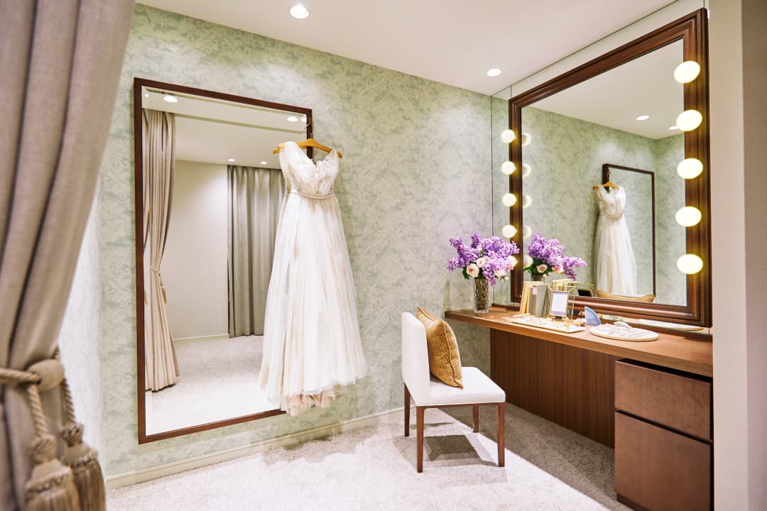 一生に一度、誰よりも美しく輝く日のお支度は、とっておきのプライベート空間で。挙式当日、おふたりが一番長い時間を過ごすブライズルームは、当日の緊張をほぐしリラックスしていただけるよう、ゆとりのある上質なお部屋をご用意しております。ご自宅にいるような、くつろぎの時間をお過ごしください。