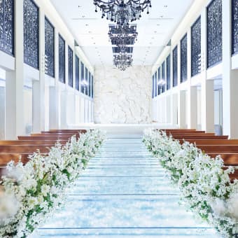 イタリアの伝統美にモダンなアレンジを加えた、洗練されたチャペル。 ジュエリーのように光輝くバージンロードやシャンデリアが、おふたりの神聖な誓いの瞬間を美しく照らし出します。