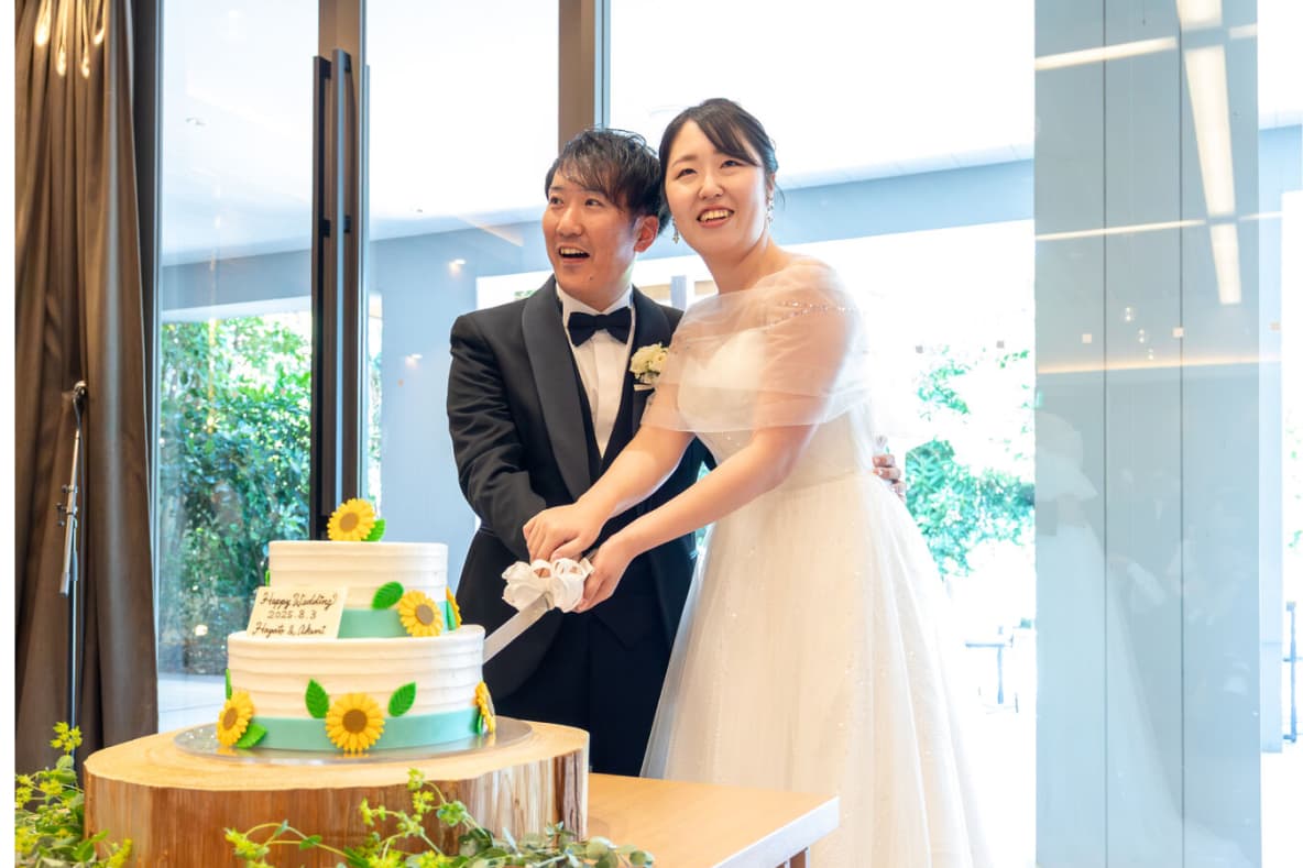 会場に一歩足を踏み入れると、そこにはおふたりが大好きな夏を感じさせる「ひまわり」が咲き誇り、鮮やかな黄色がゲストの皆様をパッと明るく迎えました。