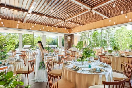 ラウンジやガーデンを使ったカジュアルな空間で、少人数ウエディングにふさわしい時間をお過ごしください。ホームパーティーのような感覚で緊張が和らぎ、自然体でゲストとの会話を楽しめます。 お料理は、 地元の旬の食材を生かした”フレンチジャポネ”を、お食事の進み具合に合わせ、最も美味しい状態でお料理をご提供します。 完全バリアフリーにも対応しておりますので、お子さま連れやご年配のゲストにも安心してお過ごしいただけます。