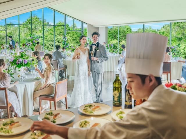京都の豊かな緑に包まれた祝宴の舞台へ。