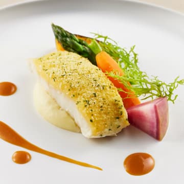 お魚料理のメインディッシュ。 旬魚や甲殻類など様々ご用意いたしております。