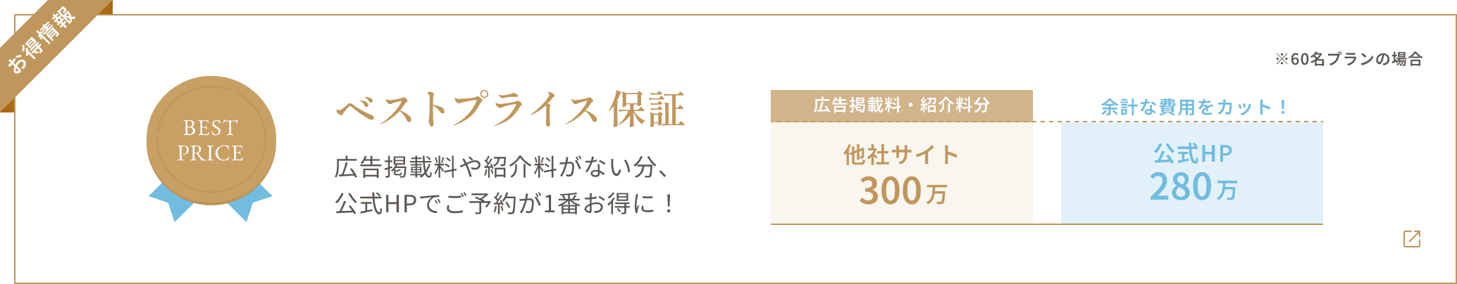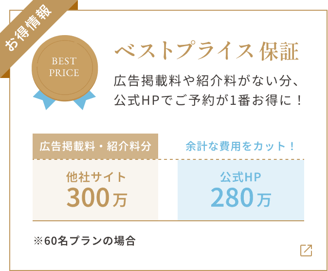 秋婚9月~11月【最大85万円お得】60名350万円⇒265万円!人気シーズンでも満足度の高い1日◎