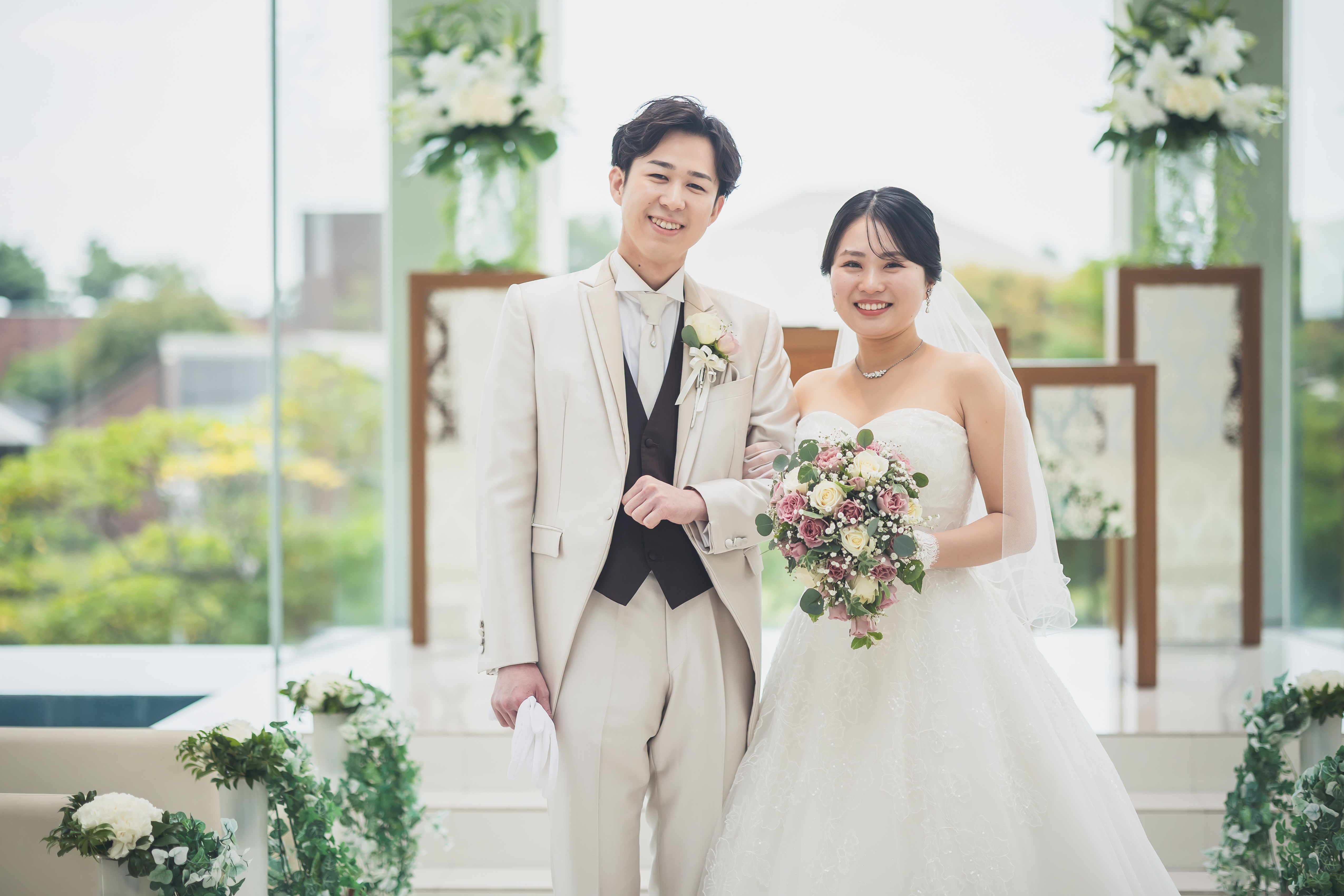 さらに衣装選びでは、スタイリストとともに「あえて普段の自分なら選ばない色」にも挑戦されたと伺っています。試着を重ね、ついに運命の一着に出会えた瞬間のさとみさんの輝くような笑顔と、それを優しく見守るりょうさんの姿。スタイリストからその報告を受けたとき、私も自分のことのように嬉しく、おふたりの幸せな光景が目に浮かぶようで胸が熱くなったことを今でも鮮明に覚えています。 お打合せのたびに深まっていくおふたりの絆を感じながら、私たちは当日という特別な日に向けて、大切に準備を整えてまいりました。