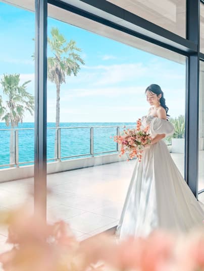 目の前に海が広がる贅沢なロケーションは、ゲストの皆さまに喜んでいただける特別なおもてなしに。陽光がきらめくデイタイムから茜色に染まるサンセットへと、時間によって刻一刻と変わる風景が、パーティーをドラマチックに彩ります。窓の外にはテラスもあり、潮風や波の音を感じながらの演出もお楽しみいただけます。