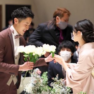 皆様から受けとったお花の花束をお渡ししてご新婦様へ愛を誓います。