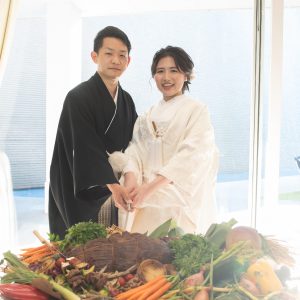 そして・・キャンプ好きなおふたりらしくBBQスタイルにてファーストバイト♡