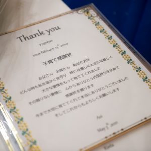 こちらは親御様への感謝の気持ちを綴った【感謝状】でございます。