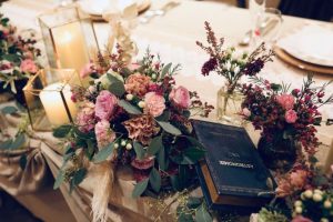 続いてはアンティーク調でキャンドルや洋書などの小物も使用した
