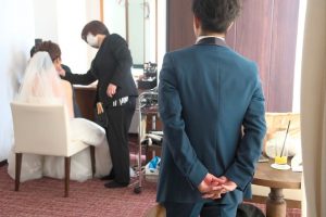 本日はスマイル当日の裏側の新郎新婦様の様子を