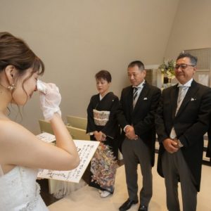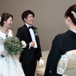 お衣裳を着替えてご結婚のご準備が整ったおふたりが最初にお会いするのは大切な親御様です。