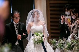 花嫁の歩く姿、エスコート、大切な方との引き渡しなど、言葉ではなく、ゲストの目に焼き付けて心に残る挙式にしましょう。