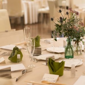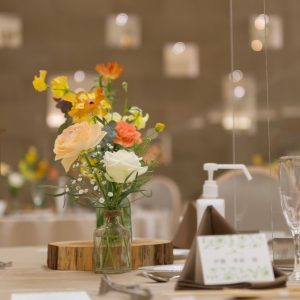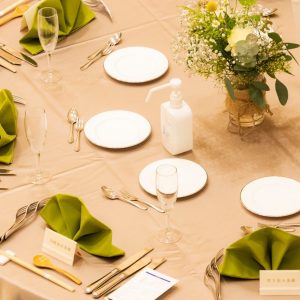 円卓だけではなく、流しテーブルと言われる長方形のテーブルスタイルも一層卓上が華やかに仕上がります。少人数での会食にも合います◎