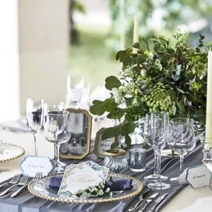 白壁の会場や、自然光がたっぷり入る明るい会場に似合うテーブルスタイルです。
