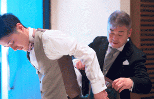 1つ目は、最後の身支度として親御様からのジャケットセレモニー。
