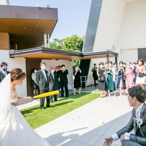 チャペルでおふたりの誓いをゲストの承認の元結ばれた後はゲスト様とアフターセレモニーをお楽しみください^^