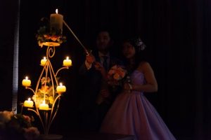 新郎新婦がテーブルを回ってゲストテーブルのキャンドルに点火するのは
