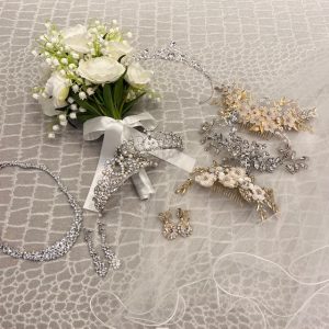 ティアラやサイドにつけるバレッタなどをご紹介していきます。