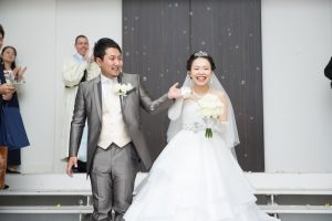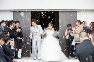 挙式が結び、ゲストの皆様からお祝いのフラワーシャワー。