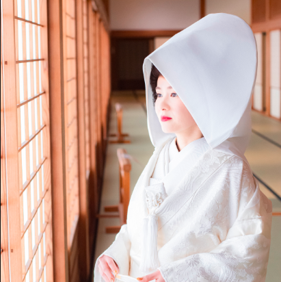 “ふき”と呼ばれる裾部分に赤が差し色となっている白無垢や