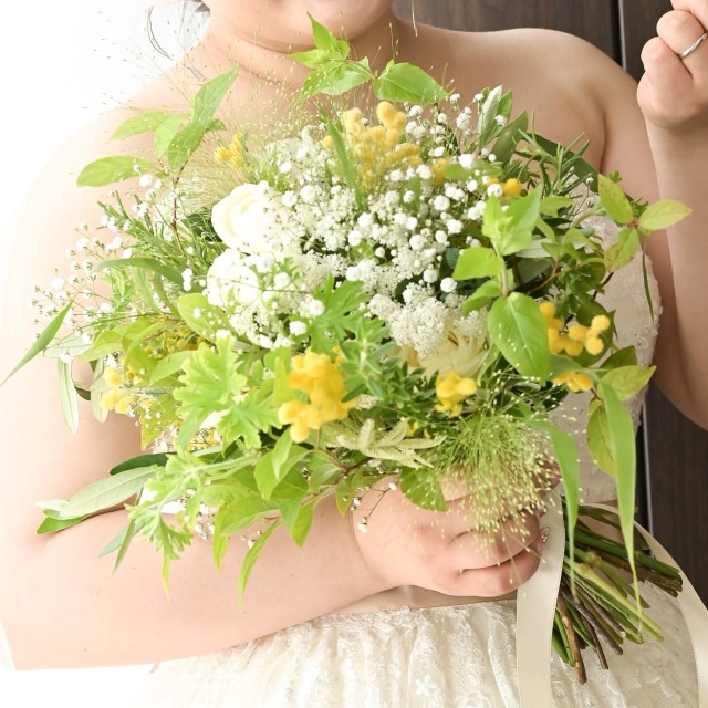 【ウエディングブーケ】はおふたりの大切なご結婚式当日、ご新婦様のそばにずっとございます。