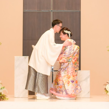 挙式は白無垢、披露宴では色打掛を着用するのが