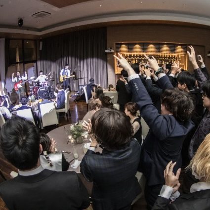 ご友人様たちとバンドを組まれてゲスト様、そして大好きな新婦様に歌のプレゼント。