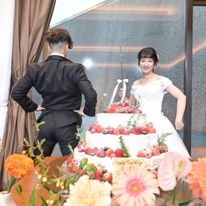 続いてご紹介するのは少し変わった【ケーキ入刀】セレモニー。