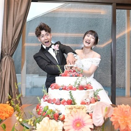 おふたりの初めての共同作業であるケーキ入刀のセレモニーを