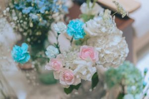 装花は結婚式全体をより華やかに演出し、お花の色やその花の持つイメージなどで