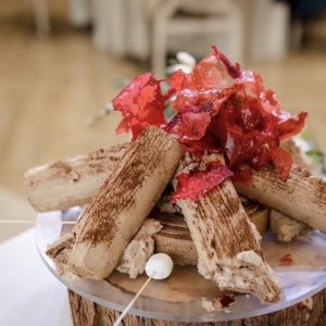 こちらはキャンプ好きの新郎新婦様の焚火をモチーフにしたケーキ
