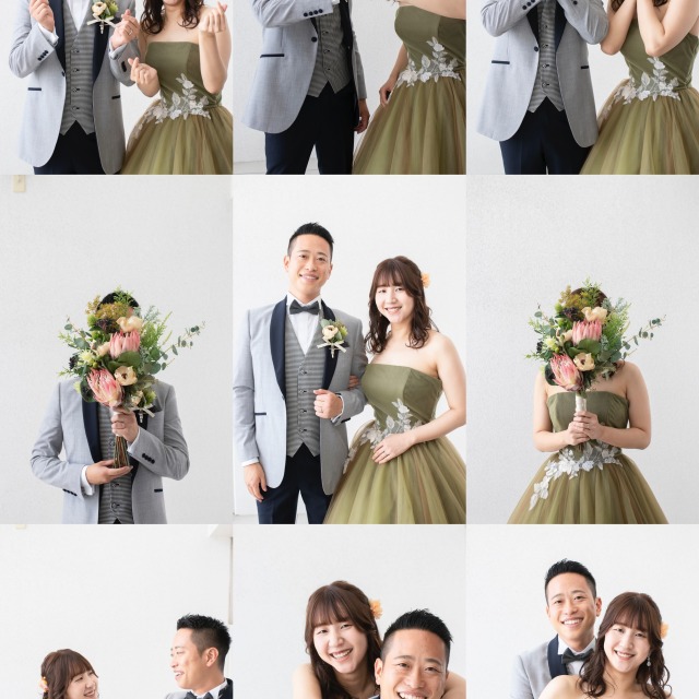アルバムやSNSに、色々な表情のお二人を掲載できます。