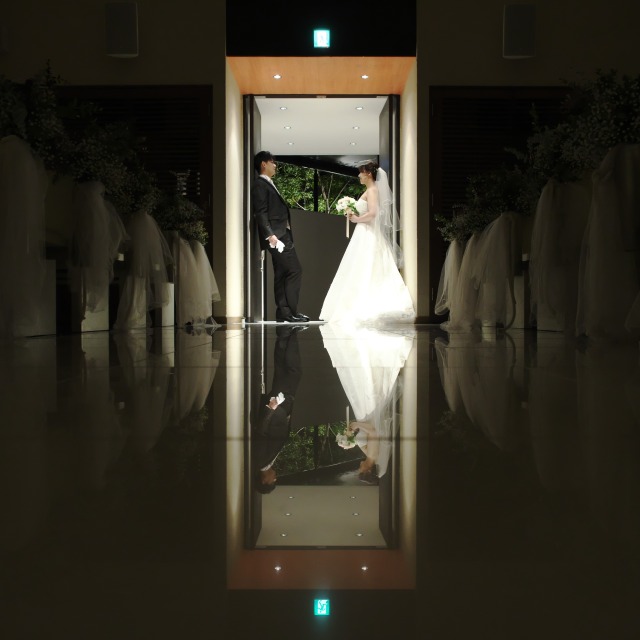 ドレスとタキシードを着用したお二人の姿は輝いていますね。