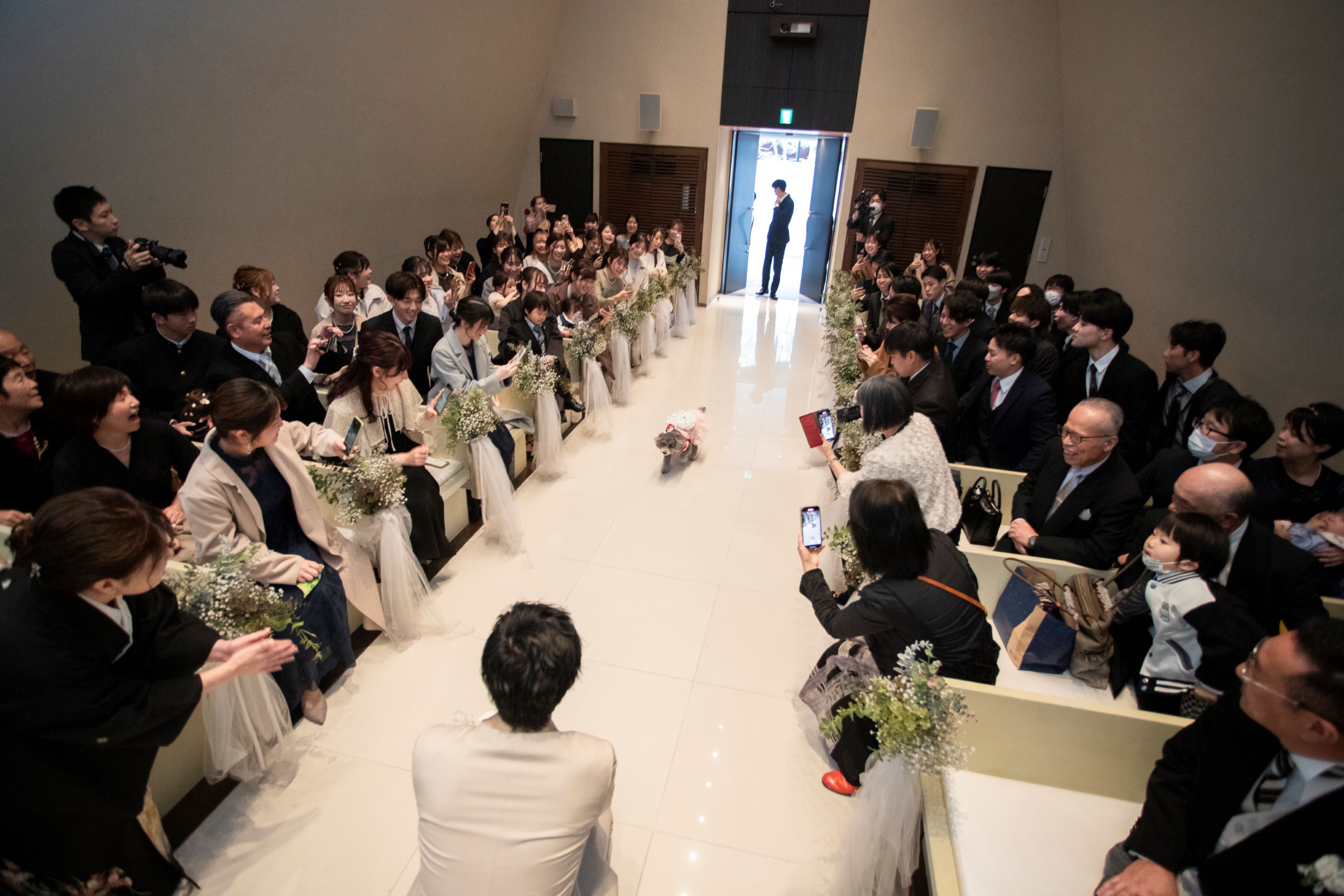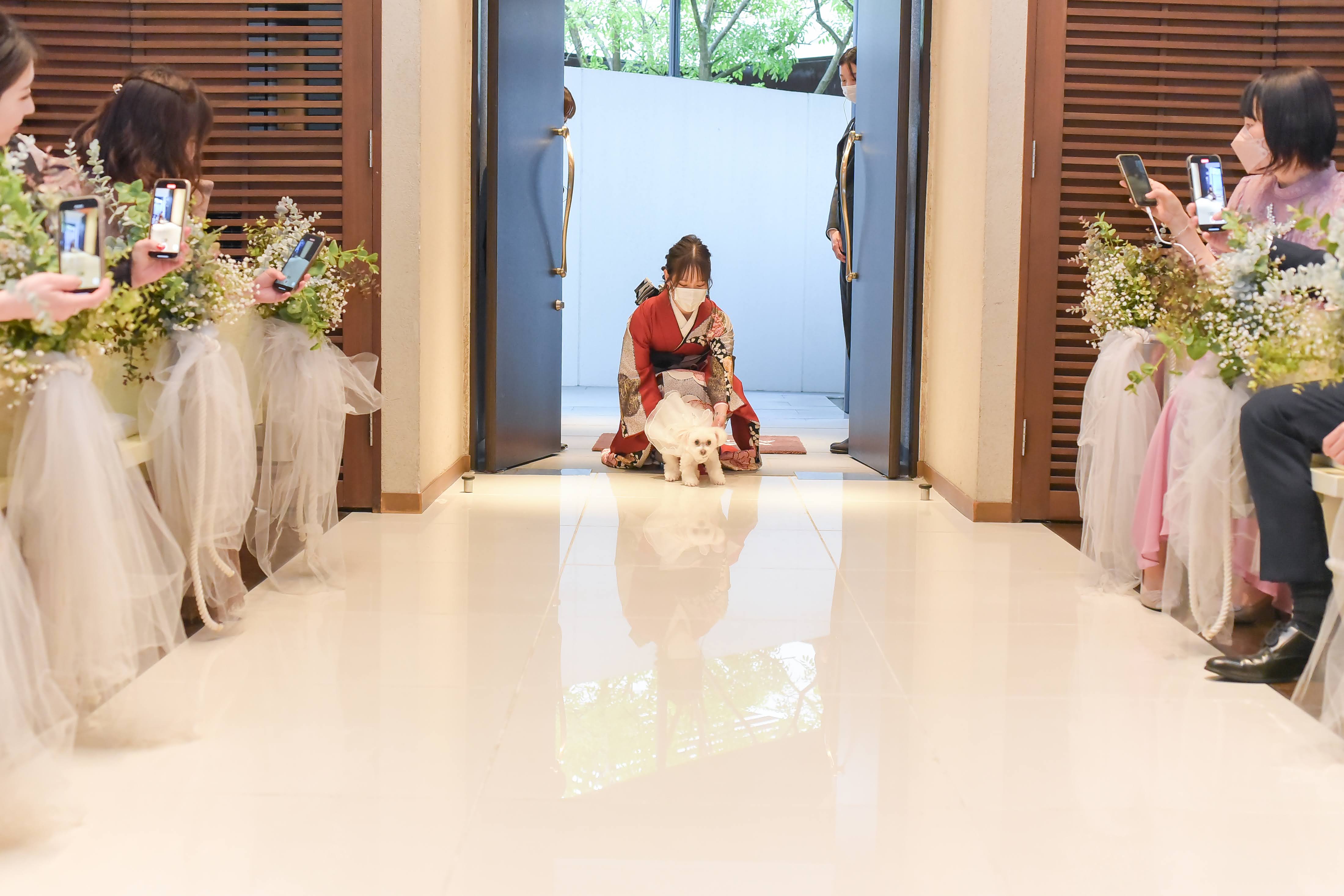 新婦様がお父様と歩くことが多いバージンロードですが、愛犬も連れて一緒にバージンロードを歩いたら、