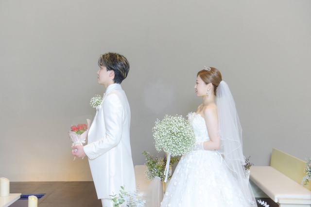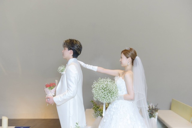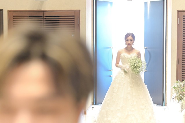 ファーストミートとは、新郎新婦が別々に準備をして、挙式の直前にお互いの姿を披露すること。