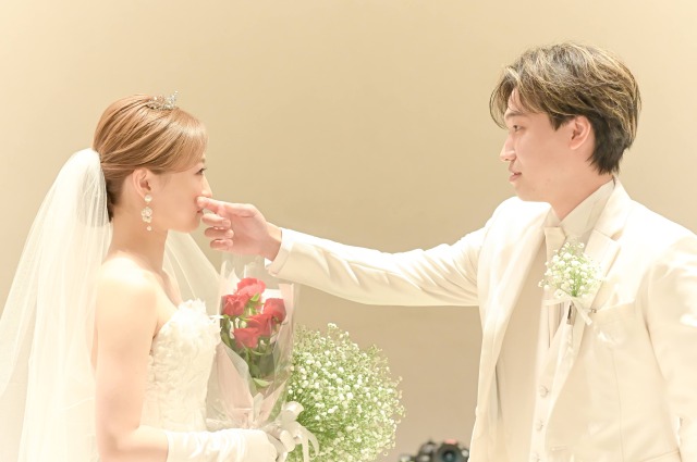 ですがこの瞬間の喜びのあまり涙を流される新婦様と涙をぬぐわれる優しい新郎様の姿は