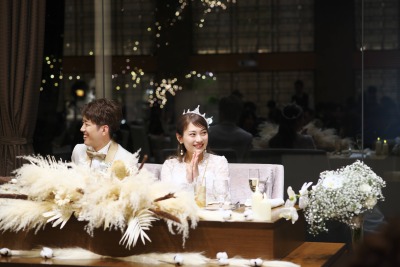 ドレスやアクセサリー、装花などにグリーンを取り入れると、