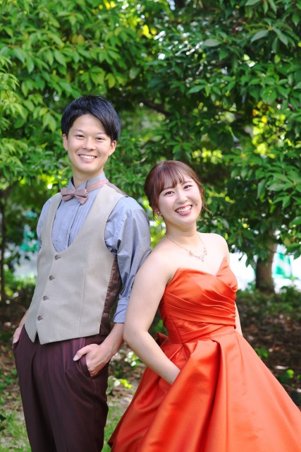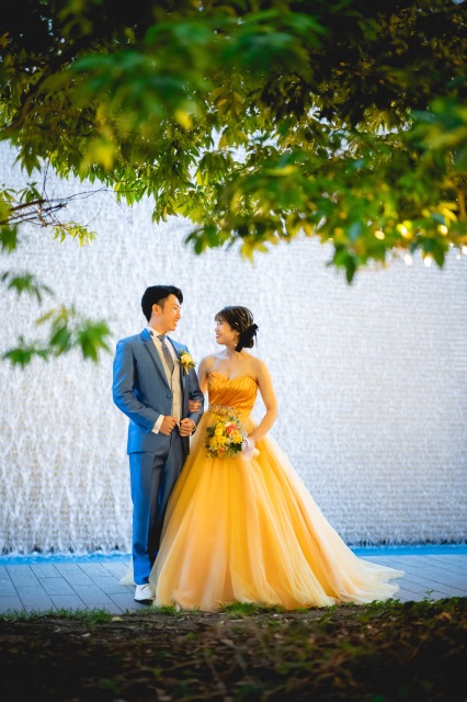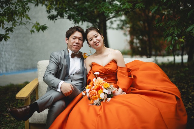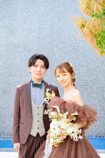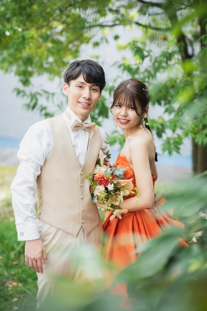 お写真からもおふたりの温かさがあふれ出す、暖色系コーディネート