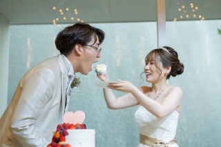 こちらのおふたりは“野球”をテーマにしたケーキでファーストバイト♡