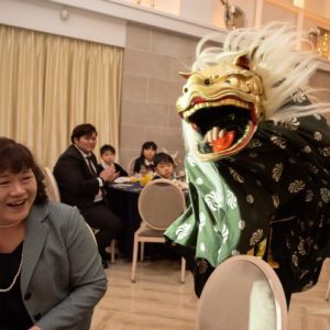 ゲストにサプライズの獅子舞は、お子様も大人の方も皆様