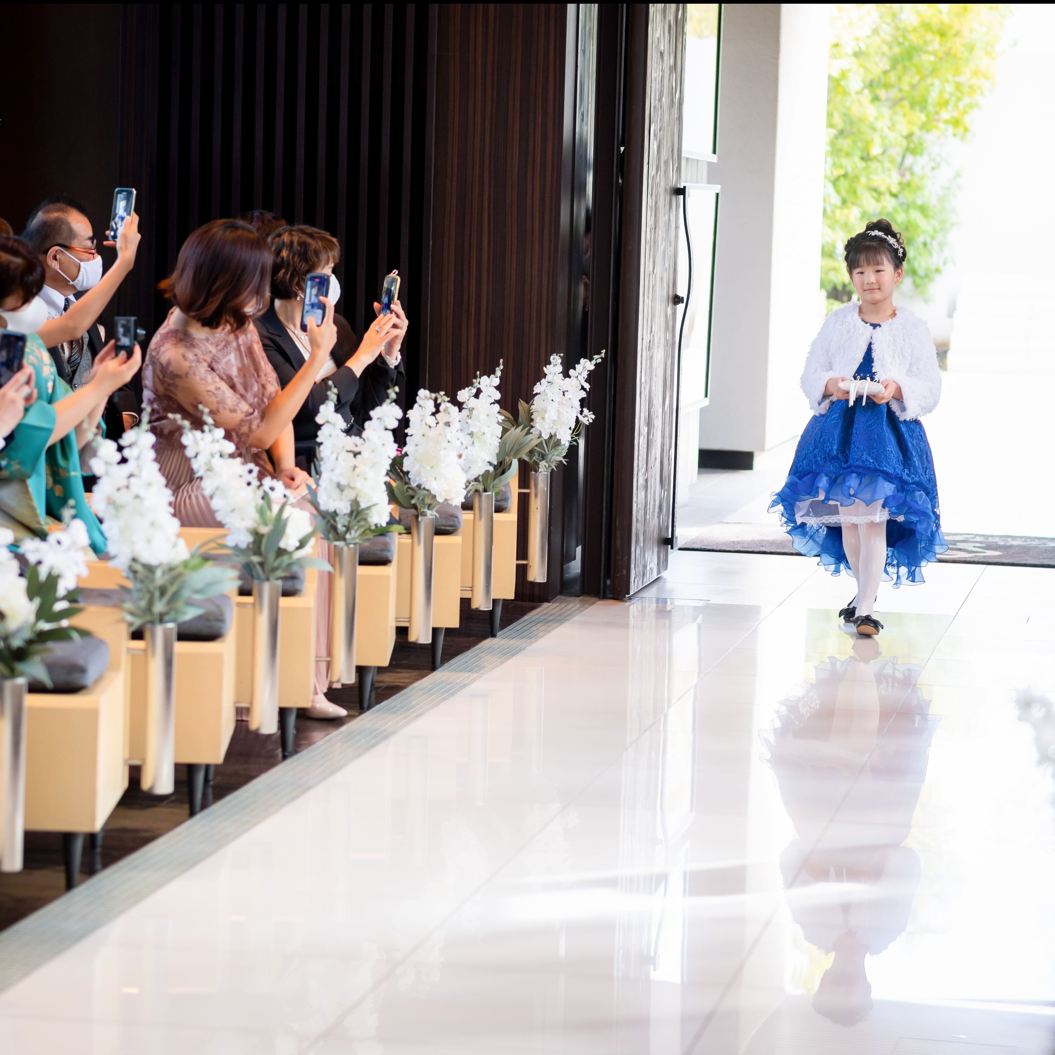 挙式のときに 新郎新婦が交換する結婚指輪を運ぶ リングボーイ、リングガール リングピローに指輪を乗せて ...