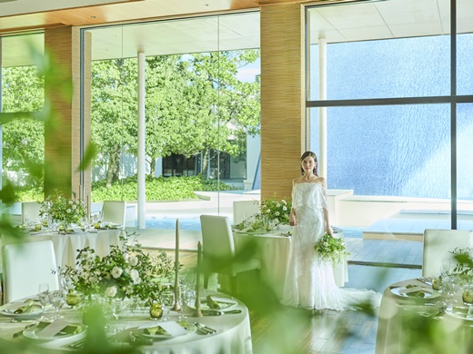 2500坪もの広大な敷地には、シンボルであるアクアストリームチャペルを中心に、開放的なガーデンとアクアテラス