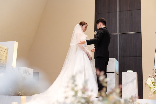 指輪の交換やベールアップのシーンなども!