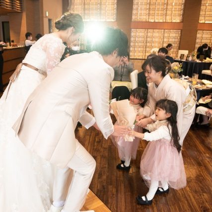 規模を縮小し、親族と少数の友人のみの式でしたがアットホームな雰囲気で、