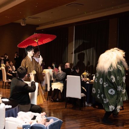 周りとは一味違った結婚式をしたいと思っていたので、獅子舞の演出が出来ると聞いてから、絶対しよう!と思っていました。実際に当日はかなりの盛り上がりで、ゲストからの評判も良く、やって良かったなと思いました。