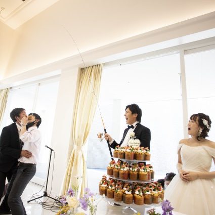 他にもブーケトスの代わりにハッピーパラシュートを、新郎のファーストバイトは釣り竿バイトにする等やりたい事を何でも詰め込んだオリジナルの式ができて満足です。