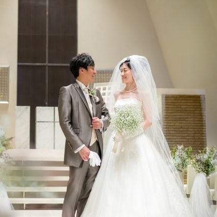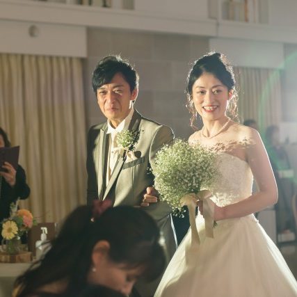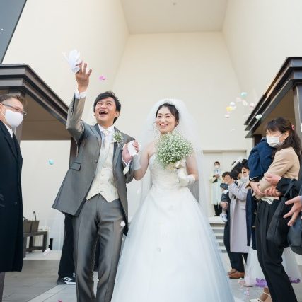 打ち合わせでは、担当の梶尾さんが私達のテーマに沿った形で式の内容について提案してくださったので、初めてで何もわからない私達でも、いつもワクワクしながら話し合いをする事ができました。コロナ禍で挙式をすることへの不安があり、一度延期をさせていただきましたが、梶尾さんをはじめ多くのスタッフさんに励ましとサポートをしていただきました。そのおかげで、当日はアドレナリンが爆発するほどの楽しい時間を過ごすことができました。私たち2人とも緊張と感動の連続でした。このような貴重で幸せなひとときを過ごさせていただき、本当にありがとうございました。