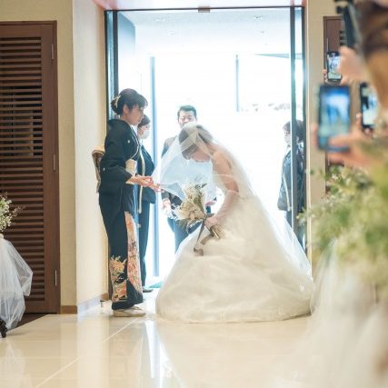 当日はあまり実感がないまま迎えて、ヘアメイクをしてもらって少し実感が湧いて、挙式をして、披露宴で登場して、またお色直しして、登場して、、、とほんとあっという間でした!体感は30分くらいでした(笑)